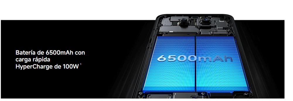 - Batería y Carga: Capacidad masiva de 6.500 mAh con tecnología de silicio-carbono y carga rápida HyperCharge de 100W.