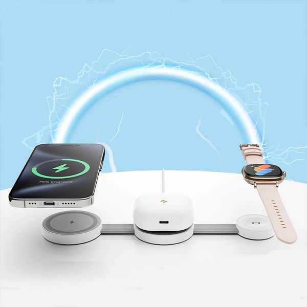 - CARGA SIMULTÁNEA 3 EN 1: carga su teléfono inteligente, reloj inteligente y auriculares inalámbricos a la vez para máxima comodidad.