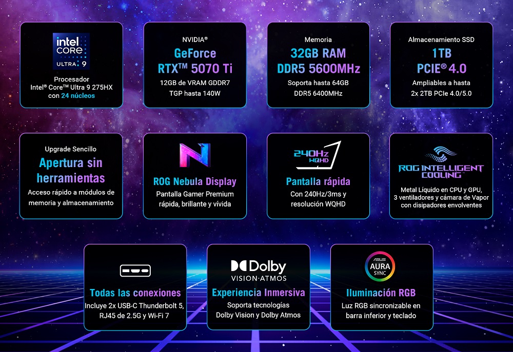 NOTEBOOK GAMER ROG STRIX G16 G615LR-S5033W ULTRA 9 32GB 1TB RTX5070TI W11